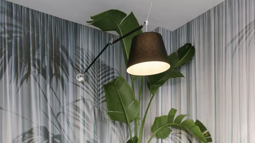 De Tolomeo Mega wandlamp heeft, wanneer deze in een hoek van 90 graden staat, een breedte tussen 97 en 102 centimeter en een hoogte van 110 centimeter. De maximale reikwijdte van de lamp is, afhankelijk van de gekozen kap, 180 tot 185 centimeter. De twee armen zijn door het bekende veersysteem van de Tolomeo serie in de gewenste positie te plaatsen. De kap is beschikbaar met een diameter van 32, 36 of 42 centimeter. De wandlamp is gemaakt van aluminium en heeft een kap van perkamentpapier of satijn. In de lamp zit een E27 fitting, geschikt voor een (LED) lichtbron van maximaal 21 Watt. De lichtbron wordt niet meegeleverd. Deze variant van de Tolomeo Mega wandlamp is voorzien van een ingebouwde dimmer. Er is ook een variant met een aan-/uitschakelaar beschikbaar. In de Tolomeo serie zijn daarnaast diverse andere varianten van dit ontwerp te vinden.