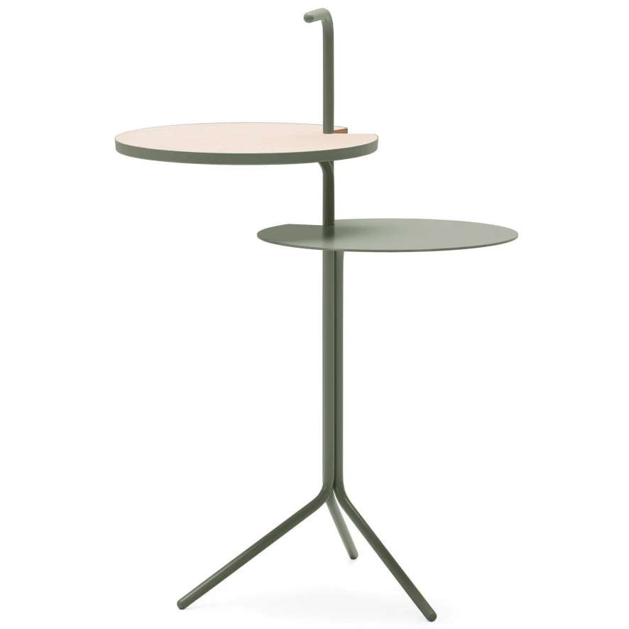 De oo-Two bijzettafel van Design on Stock heeft een frame gemaakt van gestanst staal. Het staal heeft een gekleurde poedercoating. Voor deze coating kun je kiezen uit de kleuren Air, Burgundy, Concrete, Night, Pink, Mustard, Sage en Steel Blue. De tafel heeft een hoogte van 76 centimeter en een breedte van 52 centimeter. Beide tafelbladen hebben een diameter van 33 centimeter en het onderste tafelblad vind je op de hoogte van 48 centimeter. Het bovenste tafelblad heeft een toplaag van houten essenfineer.