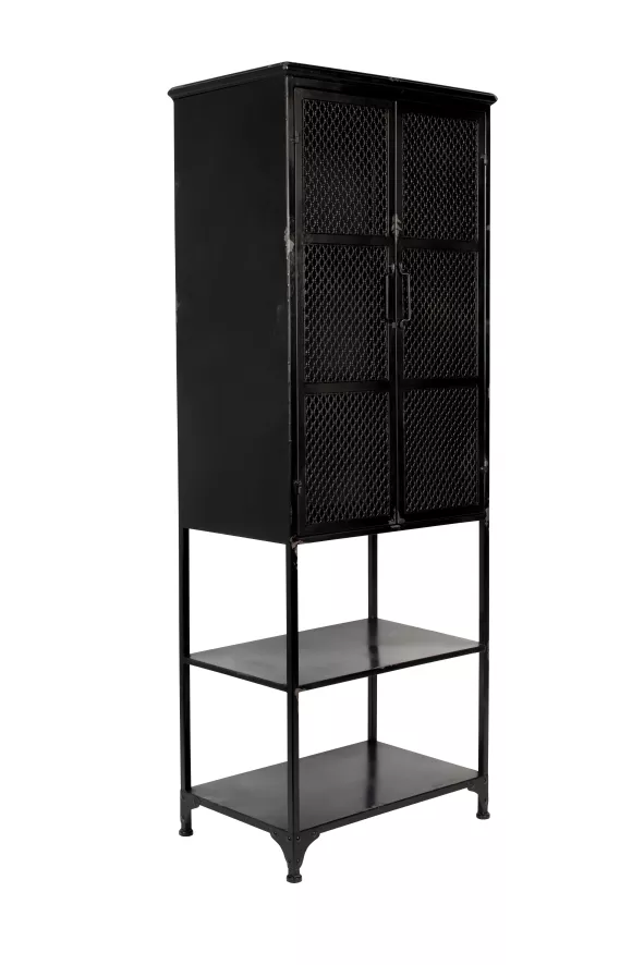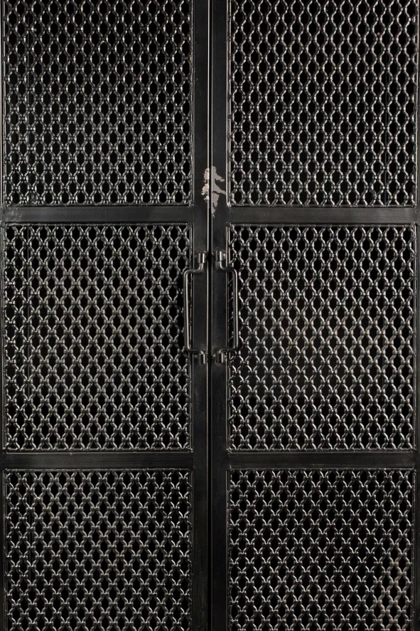 De Denver vitrinekast hoog van Dutchbone is 60 centimeter breed, 39 centimeter diep en 160,5 centimeter hoog. De vitrinekast heeft 5 planken met een breedte van 60 centimeter en een diepte van 39 centimeter. De hoogte tussen de planken is 28 centimeter. De hoogte van de poten is 8,5 centimeter. De maximale gewichtsbelasting is 75 kilogram. De Denver vitrinekast is gemaakt van ijzer met een ‘versleten’ poedercoating. De deuren hebben een opengewerkt diamantpatroon. De Denver vitrinekast is ook in een lage variant beschikbaar.