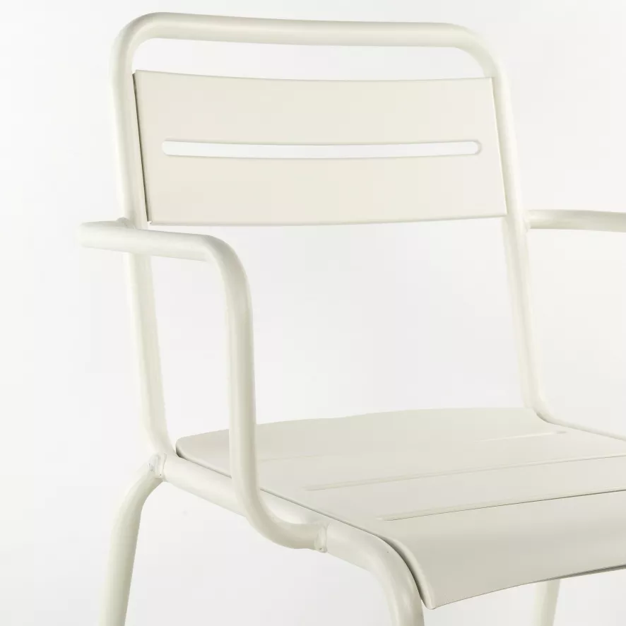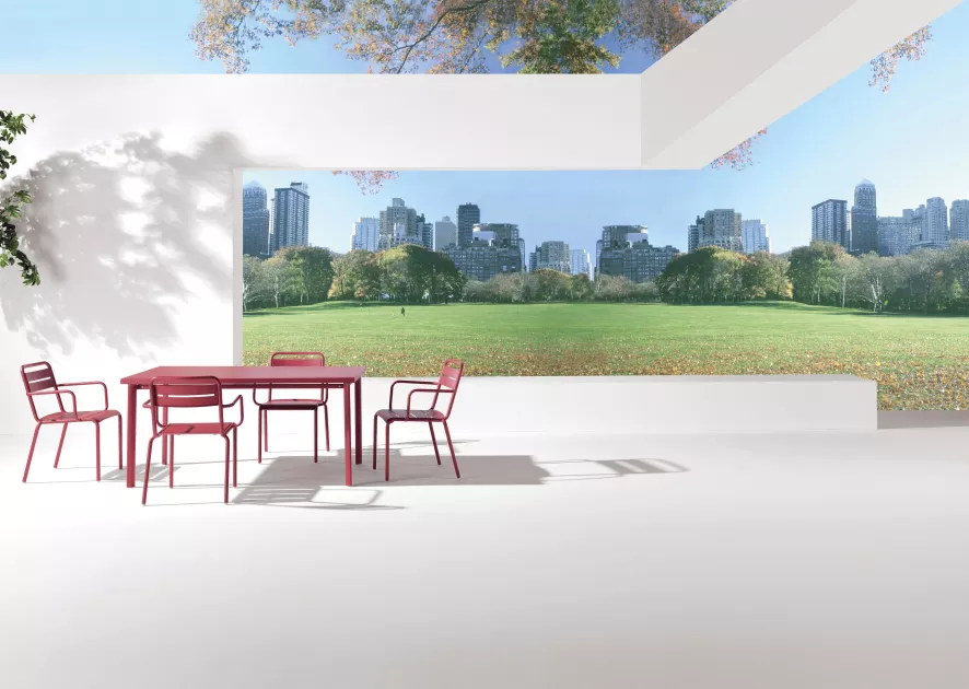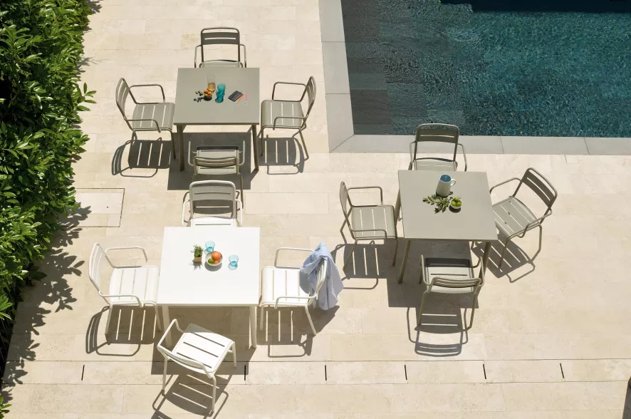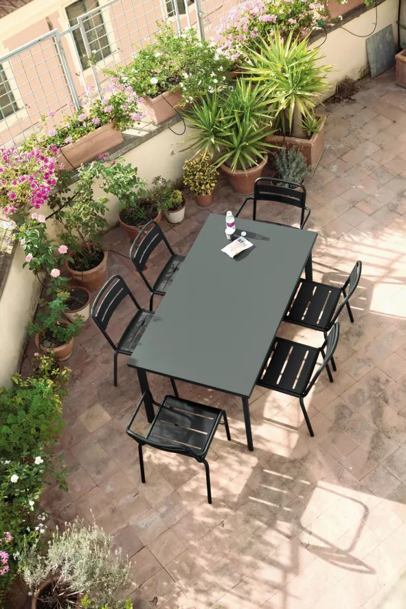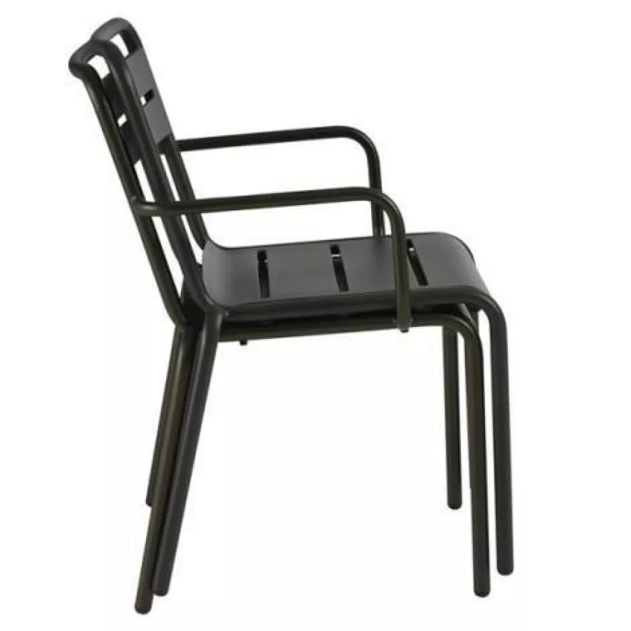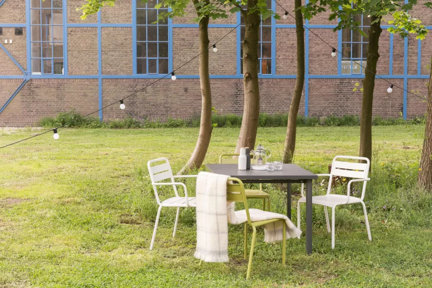 Emu heeft een Star tuinstoel met armleuning in staal en aluminium in het assortiment. Qua afmetingen zijn deze stoelen identiek, alleen het materiaal is verschillend. En dat maakt dat de Star staal 7,6 kilogram per stoel weegt tegenover de Star aluminium 4,6 kilogram. Een stuk lichter dus!
