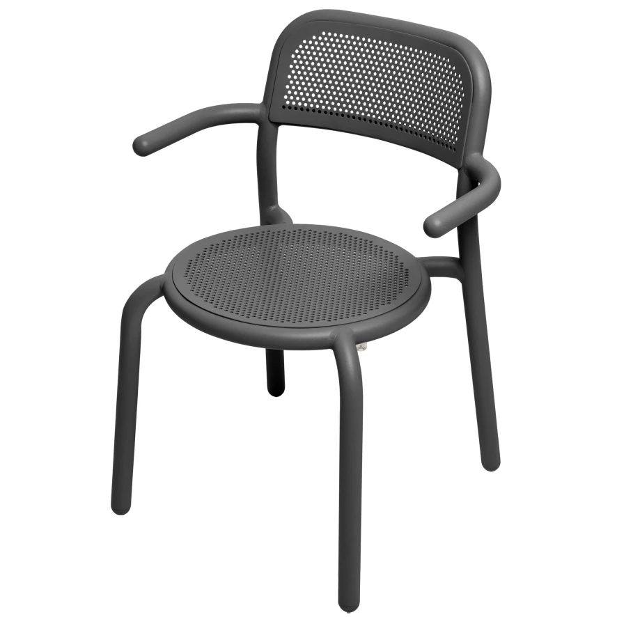 De Toni stoel met armleuning van Fatboy is 59,5 centimeter breed, 55 centimeter diep en 80,5 centimeter hoog. De zithoogte is 46,5 centimeter, de zitbreedte is 44 centimeter en de zithoogte is 46,5 centimeter. De hoogte van de armleuning is 64,5 centimeter. De stoel is gemaakt van aluminium en is geschikt voor binnen en buitengebruik. De stoel is stapelbaar, lichtgewicht, UV-bestendig en is verkrijgbaar in verschillende kleuren. Kijk ook eens bij de Toni bistro tafel, de Toni eettafel en de Toni stoel.