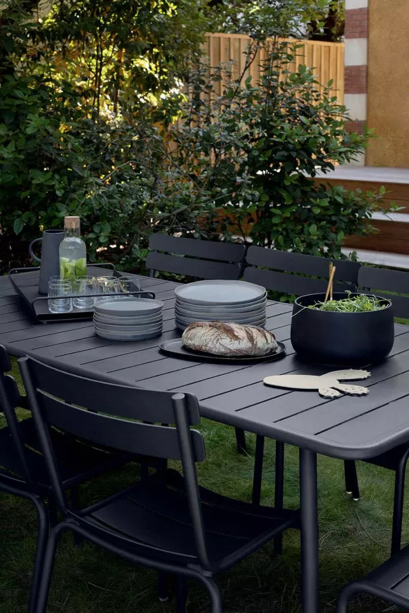 De Luxembourg tafel 165×100 van Fermob heeft een aluminium frame en een tafelblad van aluminium latten. De tafel is beschikbaar in 24 verschillende kleuren, van strak zwart tot zomers oranje. Alle kleuren zijn kleurvast en zullen dus niet verbleken. De tafel heeft een lengte van 165 centimeter, een breedte van 100 centimeter en een hoogte van 74 centimeter. De tafel heeft een goede weersbestendigheid.