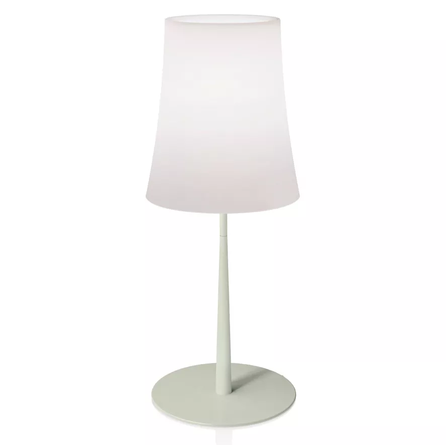 De Birdie Easy tafellamp large van Foscarini is ontworpen door Ludovica. De tafellamp is 61.5 centimeter hoog en 25 centimeter breed. De lamp is gemaakt van gecoat metaal en polycarbonaat. In de lamp kan een E27 LED retrofit lichtbron met een maximaal wattage van 57. Deze lichtbron wordt niet meegeleverd. De lamp straalt diffuus licht uit. Je zet de tafellamp uit en aan door middel van de switch op het transparante snoer van de lamp. De Birdie Easy tafellamp is beschikbaar in vele verschillende kleuren en er is ook een kleinere versie beschikbaar.
