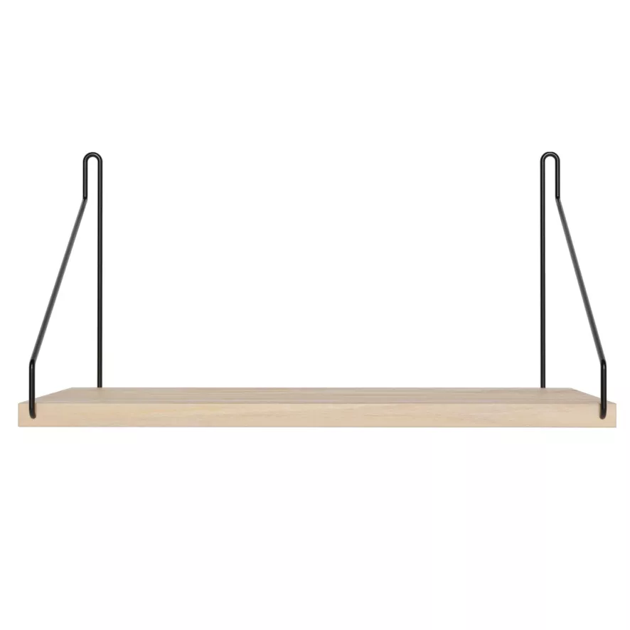 De Shelf wandplank 40 cm van Frama is gemaakt van eikenhout (tweemaal geolied). De ophangbeugels zijn verkrijgbaar in het zwart, messing of koper. Deze plank heeft een breedte van 40 centimeter, een diepte van 20 centimeter en een hoogte van 20 centimeter. De plank is 2 centimeter dik.