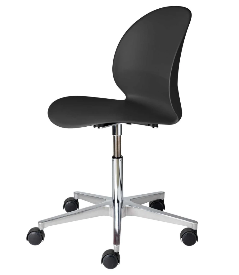 De Fritz Hansen NO2 Recycle, NO2-30 stoel swivel chair is 62,5 centimeter breed; 62,5 centimeter diep en 77 tot 90 centimeter hoog. De hoogte van de stoel is verstelbaar. De zithoogte is 42 tot 55 centimeter. De zitting is gemaakt van 100% gerecycled/recyclebaar polypropyleen. De stoelpoten zijn gemaakt van gepolijst aluminium (95% gerecycled). De Fritz Hansen NO2 Recycle, NO2-30 stoel swivel chair is ontworpen door Nendo en is verkrijgbaar in de kleuren zwart, wit, grijs, lichtblauw, donkerblauw, rood en oranje. Ook verkrijgbaar met een ander onderstel (monochroom of verchroomd staal).