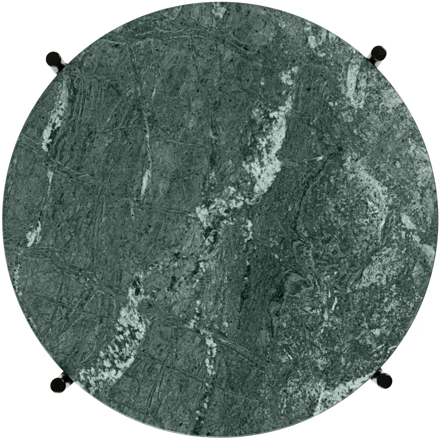 De TS bijzettafel 40 van Gubi heeft een diameter van 40 centimeter en een hoogte van 51 centimeter. Deze bijzettafel heeft een onderstel van zwart, gepoedercoat staal of messing en een tafelblad van marmer of travertijnsteen. De poten van de tafel zijn voorzien van vloerbeschermers en voor beide stenen tafelbladen kun je uit diverse soorten en kleuren kiezen. De bijzettafel heeft een gewicht van 8,5 kilogram en komt uit de gelijknamige TS collectie van Gubi. De TS bijzettafel 40 van Gubi is in verschillende uitvoeringen en formaten verkrijgbaar.
