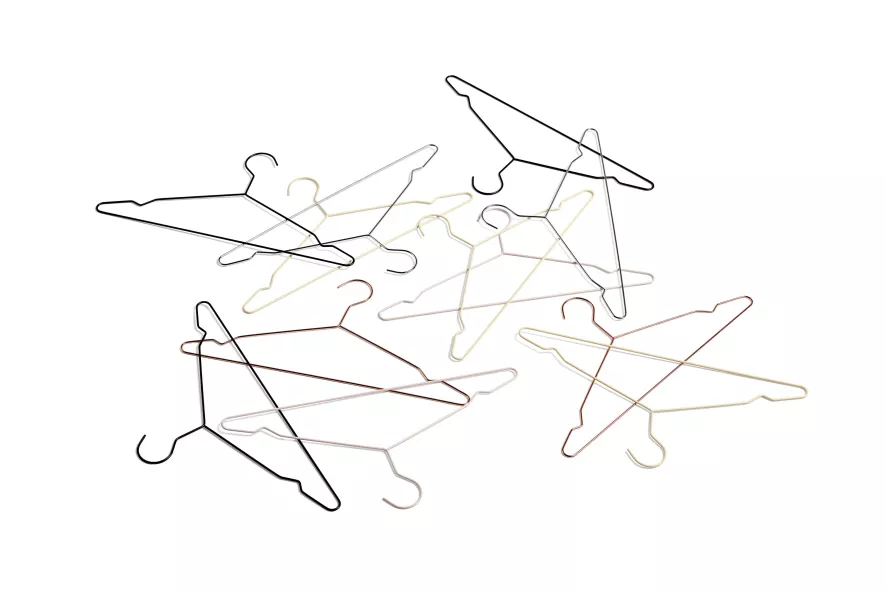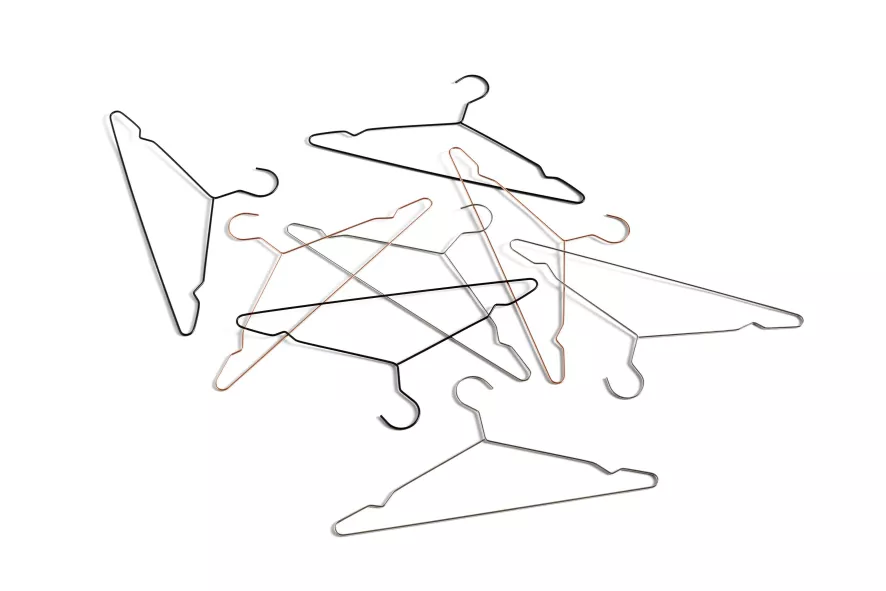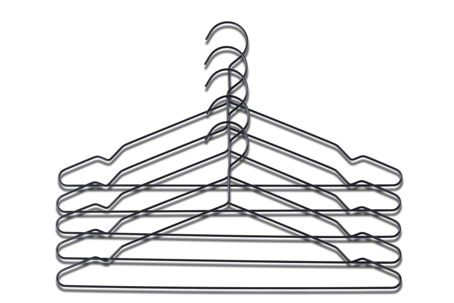 De Hang kleerhanger set van 5 van HAY bestaat uit vijf kledinghangers van staal.