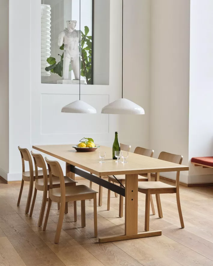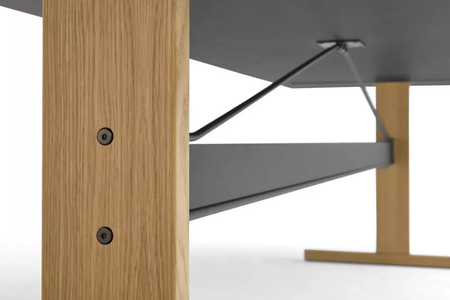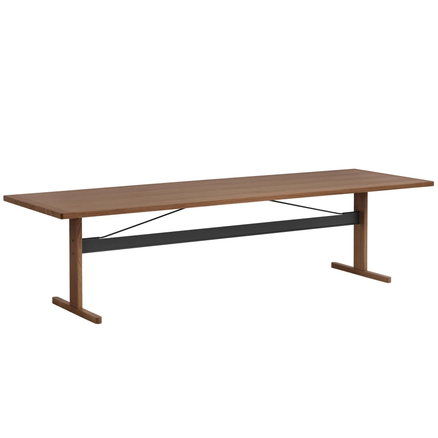 De Passerelle tafel 300×95 van HAY heeft een lengte van 300 centimeter, een breedte van 95 centimeter en een hoogte van 74 centimeter. Deze tafel heeft een massieve, eikenhouten basis, een tafelblad van fineer, laminaat of linoleum, een kern van Lisocore en een dwarsbalk van aluminium en staal. Voor deze tafel is er de keuze uit verschillende tafelbladen en kleuren. De Passerelle tafel 300×95 van HAY is geschikt voor 8 tot 10 personen en is in verschillende uitvoeringen en formaten verkrijgbaar.