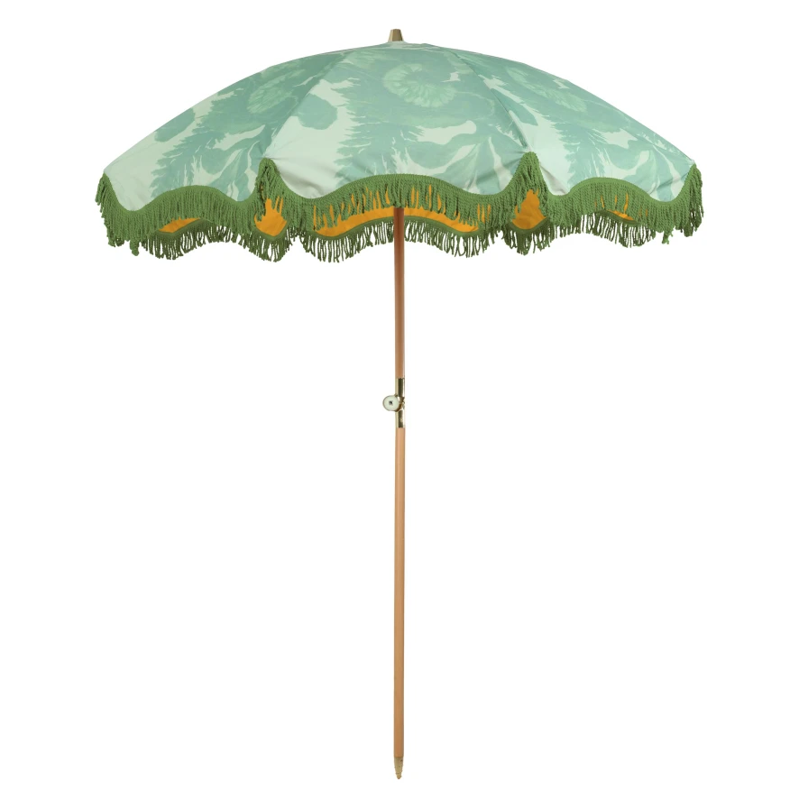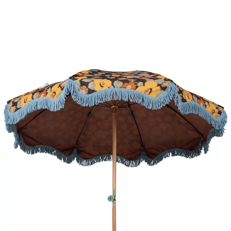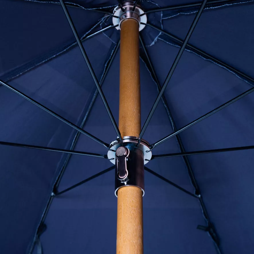 De Beach parasol van HKliving heeft uitgeklapt een diameter van 200 centimeter en een hoogte van 230 centimeter. De diameter van de paal, die gemaakt is van beukenhout, bedraagt 3,2 centimeter. De parasol is uitgevoerd met staaldraadribben, een polyesterweefsel parasolkap en messing onderdelen. De parasol weegt 5,7 kilogram en is geschikt voor buiten. HKliving raadt aan de parasol na gebruik te reinigen en volledig te laten drogen voordat deze wordt opgeborgen. Daarnaast is de parasol minder goed geschikt tegen sterke wind en kan de kleur van de parasol vervagen in direct zonlicht. De retro parasol wordt geleverd met een handige stoffen opbergtas in matching kleur en zonder parasol voet.