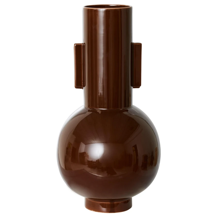 De Ceramic vaas espresso L van HKliving is een ronde, espressokleurige vaas met een diameter van 21 centimeter en een hoogte van 42,5 centimeter. De vaas is gemaakt van keramiek en heeft een bruine afwerking. De Ceramic vaas is waterbestendig.