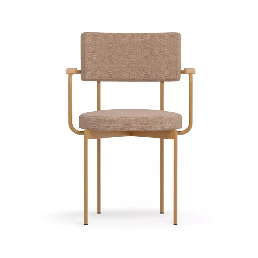 De Dining Chair eetkamerstoel met armleuning dusty HKliving is 56 centimeter breed, 54 centimeter diep en 81 centimeter hoog. De stoel heeft een zitbreedte van 44 centimeter, een zitdiepte van 44 centimeter, een zithoogte van 47 centimeter en een rugleuninghoogte van 34 centimeter. De stoel heeft een maximale draagkracht van 130 kilogram. De eetkamerstoel heeft een stalen frame, een stoffen zitting en rugleuning gevuld met schuim en berkenhouten armleuningen. De bekleding is gemaakt van 75% scheerwol en 25% vlas. De stof scoort 50.000 op de schaal van Martindale en is hiermee geschikt voor intensief woongebruik. Wij adviseren de stoel regelmatig te stofzuigen en af te nemen met een vochtige doek met water en zeep. Voor een diepere reiniging raden wij aan stoom te gebruiken of naar ene professionele stomerij te gaan. Vermijd contact met scherpe voorwerpen. De Dining Chair eetkamerstoel is verkrijgbaar in verschillende kleuren en weegt 7 kilogram.