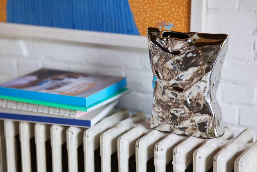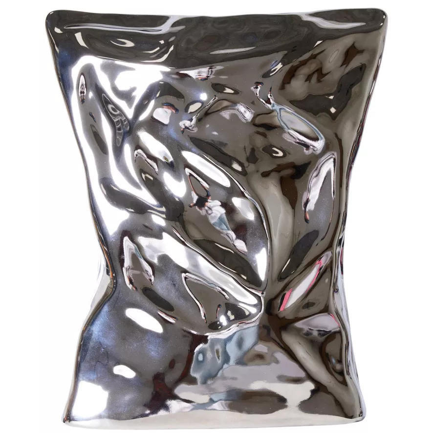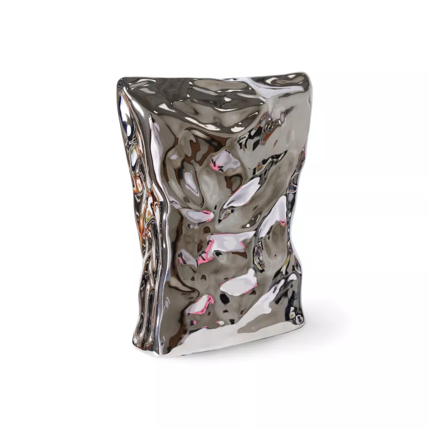 De HK Objects vaas bag of crisps van HKliving 22 centimeter lange, 9 centimeter breed en 26 centimeter hoog. De vaas is gemaakt van keramiek met een chroomafwerking. De vaas is niet waterbestendig. Wij adviseren de vaas met de hand schoon te maken, omdat hij niet resistent is tegen de vaatwasser. De HK Objects vaas bag of crisps weegt 1,4 kilogram.
