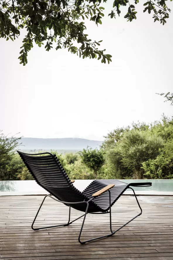 De Click Sunrocker ligstoel van Houe is 90 centimeter hoog, 64 centimeter breed en 180 centimeter lang. De zithoogte is 32 centimeter. Het frame van de stoel is gemaakt van gepoedercoat metaal, de lamellen zijn van plastic. Als je de kleur van de lamellen zat bent, kun je ze gemakkelijk loshalen en vervangen door een andere kleur. De armleuningen zijn gemaakt van bamboe. Maak de stoel schoon met een natte doek of een zachte borstel, en gebruik geen agressieve schoonmaakmiddelen. De bamboe vereist wat meer aandacht: behandel deze delen af en toe met olie (aan het begin, vier weken later en vervolgens 3 tot 4 keer per jaar), en lees bij het ontstaan van schimmel de gebruiksaanwijzing. De stoel is verkrijgbaar in verschillende kleuren.