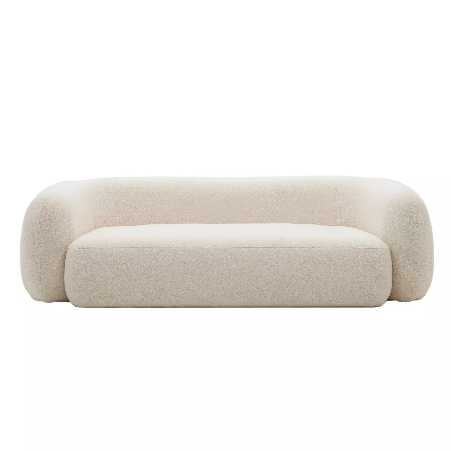 De Martina 3-zits bank off-white van Kave Home heeft een breedte van 240 centimeter, een diepte van 124 centimeter en een hoogte van 76 centimeter. De zitting heeft een breedte van 190 centimeter, een diepte van 85 centimeter en een hoogte van 45 centimeter. De armleuningen hebben een breedte van 35 centimeter en een hoogte van 76 centimeter. De rugleuning heeft een hoogte van 76 centimeter. De bank heeft een gewicht van 91 kilogram en een maximaal draaggewicht van 300 kilogram. De Martina 3-zits bank off-white is volledig bekleed met een schapenvacht stof die gemaakt is van 100% gerecycled polyester. Een meter bekleding bevat minstens 32 gerecyclede flessen.