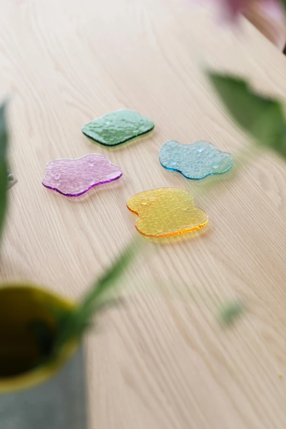 De Puddle onderzetters set van 4 van &klevering bestaat uit een set van 4 onderzetters. De eerste onderzetter heeft een breedte van 12,5 centimeter en een lengte van 11 centimeter. De tweede onderzetter heeft een breedte van 13 centimeter en een lengte van 11 centimeter. De derde onderzetter heeft een breedte van 12,5 centimeter en een lengte van 12 centimeter. De vierde onderzetter heeft een breedte van 12,5 centimeter en een lengte van 9,5 centimeter. De onderzetters hebben allemaal een hoogte van 1 centimeter. &klevering raadt aan de onderzetters te reinigen met een vochtige doek.