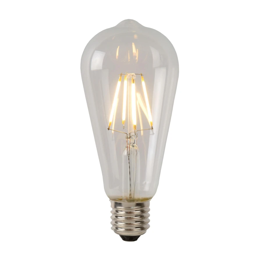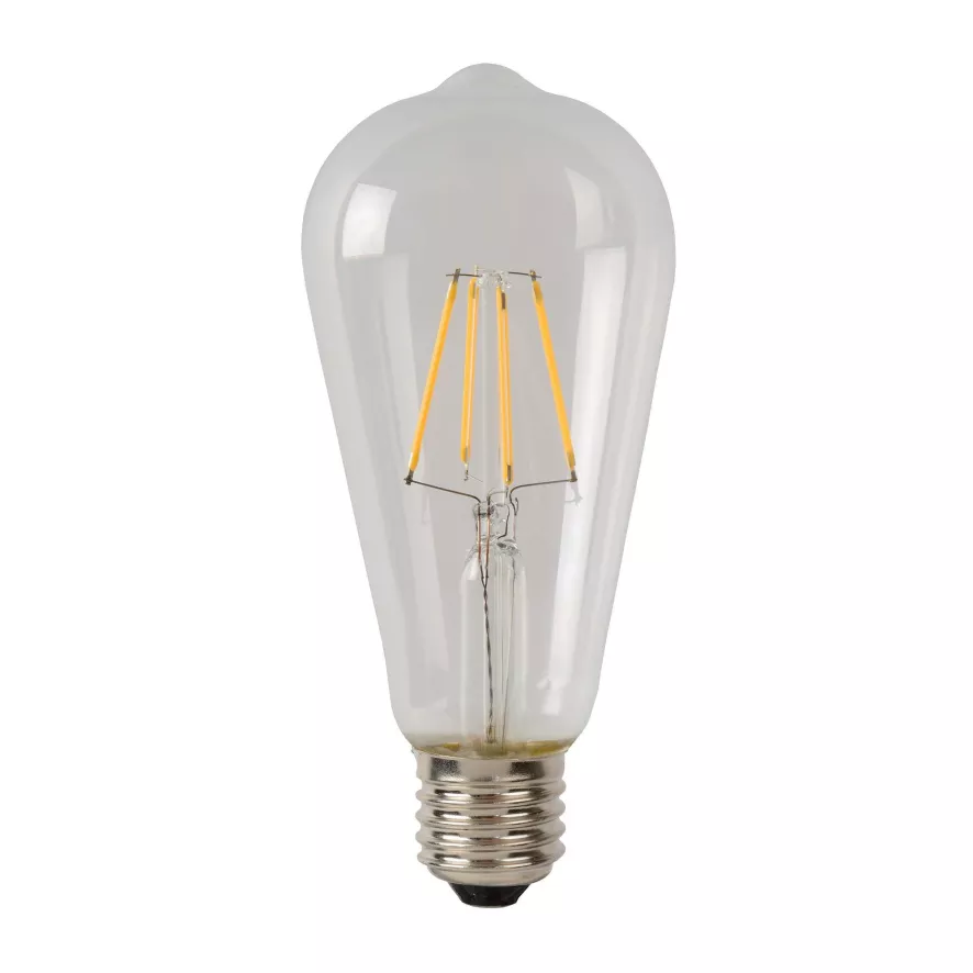 De ST64 LED lichtbron E27 5W 2700K transparant dimbaar van Lucide is een led filamentlamp. Deze lichtbron heeft een diameter van 6,4 centimeter en een hoogte van 14,6 centimeter. De lichtbron is gemaakt van transparant glas en is dimbaar.