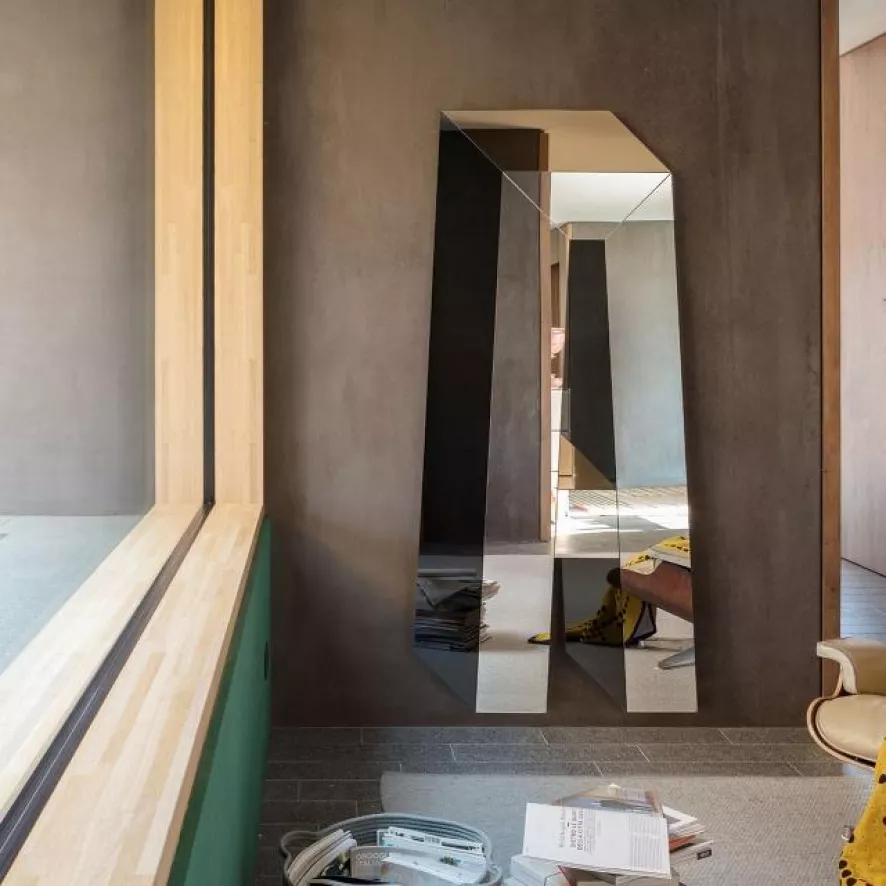 De Letteronza spiegel medium van Mogg is ontworpen door Marcantonio in 2018. De spiegels zijn 110 centimeter hoog en 2,5 centimeter diep. De breedste spiegel is die van de letter W. Deze spiegel is op het smalste punt 52 centimeter breed en op het breedste punt 79 centimeter breed. De letter I is de smalste letter en heeft een breedte van 25 centimeter. Door het gebruik van gerookt glas, gebronsd glas en zilver glas ontstaat een 3D-effect. De spiegels wegen maximaal 21 kilo per stuk. De Letteronza spiegels zijn ook beschikbaar in een groter formaat van 200 centimeter hoog.
