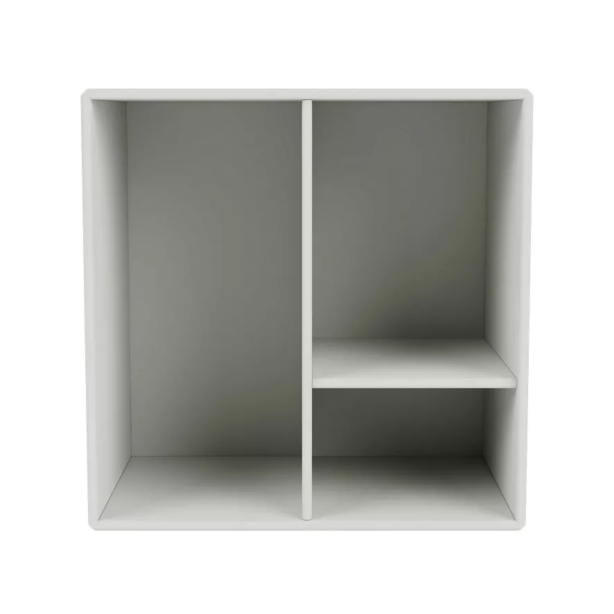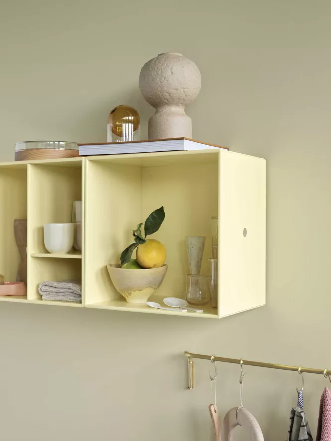 De Mini Wandkast met inlay van Montana heeft een breedte van 35,4 centimeter, een diepte van 25 centimeter en een totale hoogte van 35,4 centimeter. De wandkast is gemaakt van 8 millimeter dik, gelakt MDF. Deze wandkast is voorzien van twee ronde magneetjes met een chromen afwerking die de kastjes bij elkaar houden. Deze kast heeft een maximaal draaggewicht van 10 kilogram en wordt geleverd met poten en een ophangrail. De Montana Mini wandkast met inlay is verkrijgbaar in tien verschillende kleuren.