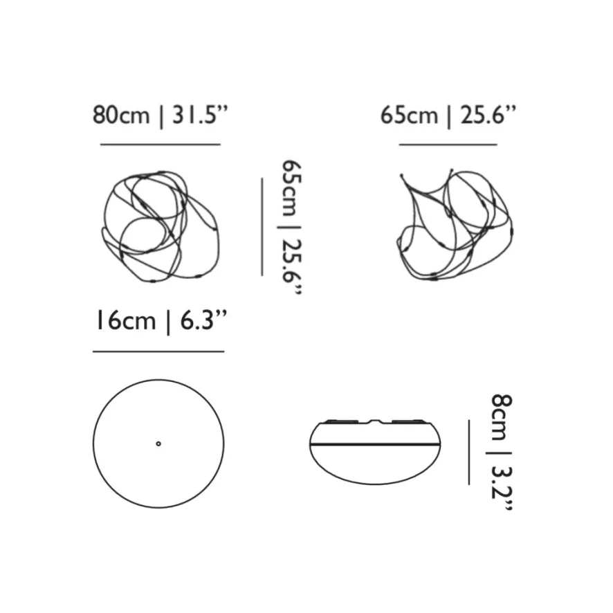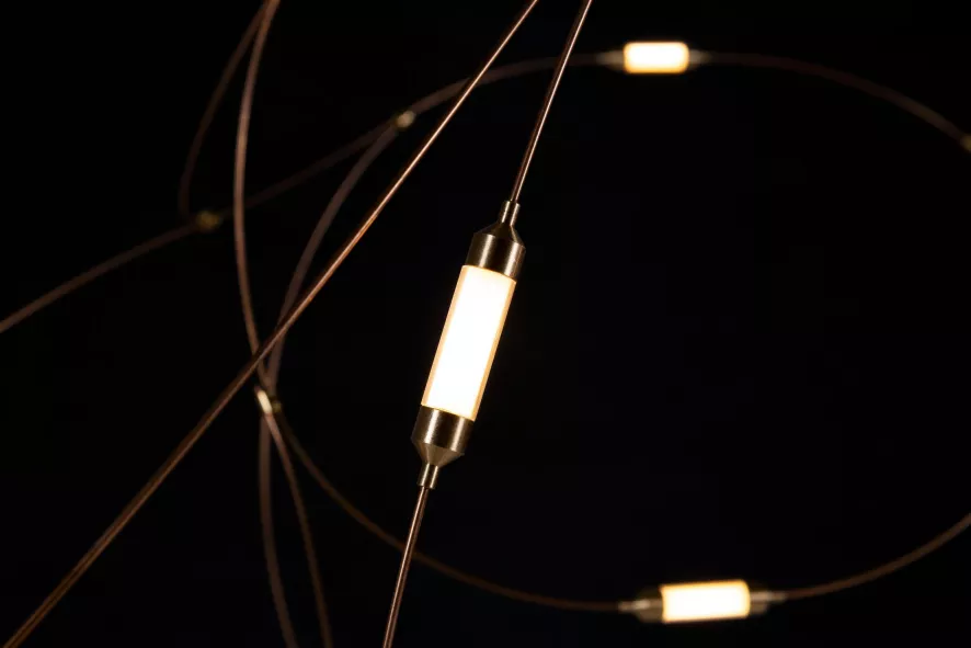 De Flock of Light 11 hanglamp LED is gemaakt van bronzen draden en 11 messing cups met semi-transparante polycarbonate diffusers. De hanglamp is 80 centimeter breed, 65 centimeter hoog en 65 centimeter diep. Het snoer aan de lamp is 250 centimeter lang. De cups zijn voorzien van geïntegreerde LED modules met een totaal verbruik van 13 Watt, een lichtopbrengst van 1240 lumen en een kleurtemperatuur van 2500K. Het is mogelijk om een dimmer aan te sluiten op de lamp. De Flock of Light is ook beschikbaar in een groter formaat.