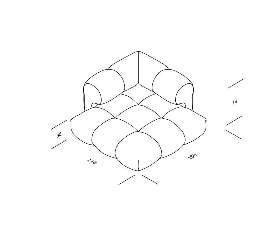 De bank heeft een breedte van 160 centimeter, een diepte van 140 centimeter en een hoogte van 74 centimeter. De bank heeft een zithoogte van 38 centimeter en een zitdiepte van 113 centimeter. De bank heeft een frame gemaakt van MDF, veren, koud schuim en polyethyleen schuim, watten en vilt. De bank is met de hand bekleed en de bekleding is met de hand genaaid. De bekleding is gemaakt van Kvadrat stof. De bank weegt 91 kilo. De bank is verkrijgbaar in verschillende kleurvariaties.