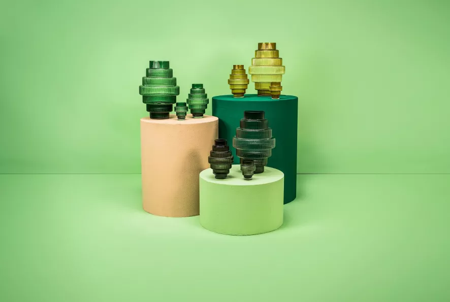 De Steps vaas small van pols potten heeft een diameter van 20 centimeter en een hoogte van 30 centimeter. De vaas is gemaakt van mondgeblazen glas, met volle kleuren en weegt 1,5 kilogram. De vaas is verkrijgbaar in verschillende kleuren én in een maatje groter.