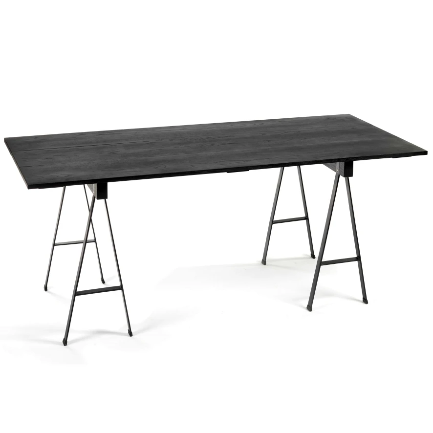 De Studio Simple tafel large van Serax bestaat uit een set van 2 schragen en een tafelblad. Het tafelblad is 180 centimeter breed, 75 centimeter diep en 2 centimeter dik. De schragen zijn 71 centimeter hoog en 70 centimeter breed. Het tafelblad is gemaakt van hout, de schragen zijn gemaakt van eikenhout.