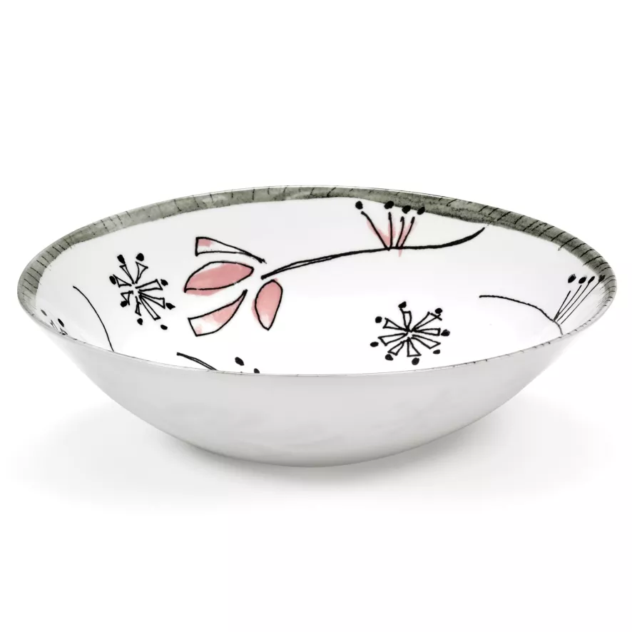 De Serax Midnight Flowers by Marni Fiore Rosa Kom Ø22 is ontworpen door Francesco Risso. De Midnight Flowers by Marni Fiore Rosa kom Ø22 van Serax heeft een diameter van 22 centimeter en een hoogte van 6,8 centimeter. De kom is gemaakt van porselein en is voorzien van een botanische tekening die met de hand geïllustreerd is. De kom is afgewerkt met een beschermende glazuurlaag, heeft een gewicht van 0,54 kilogram en wordt per twee stuks geleverd. De Midnight Flowers by Marni Fiore Rosa kom Ø22 van Serax komt uit de gelijknamige Midnight Flowers by Marni collectie en is in verschillende uitvoeringen verkrijgbaar.