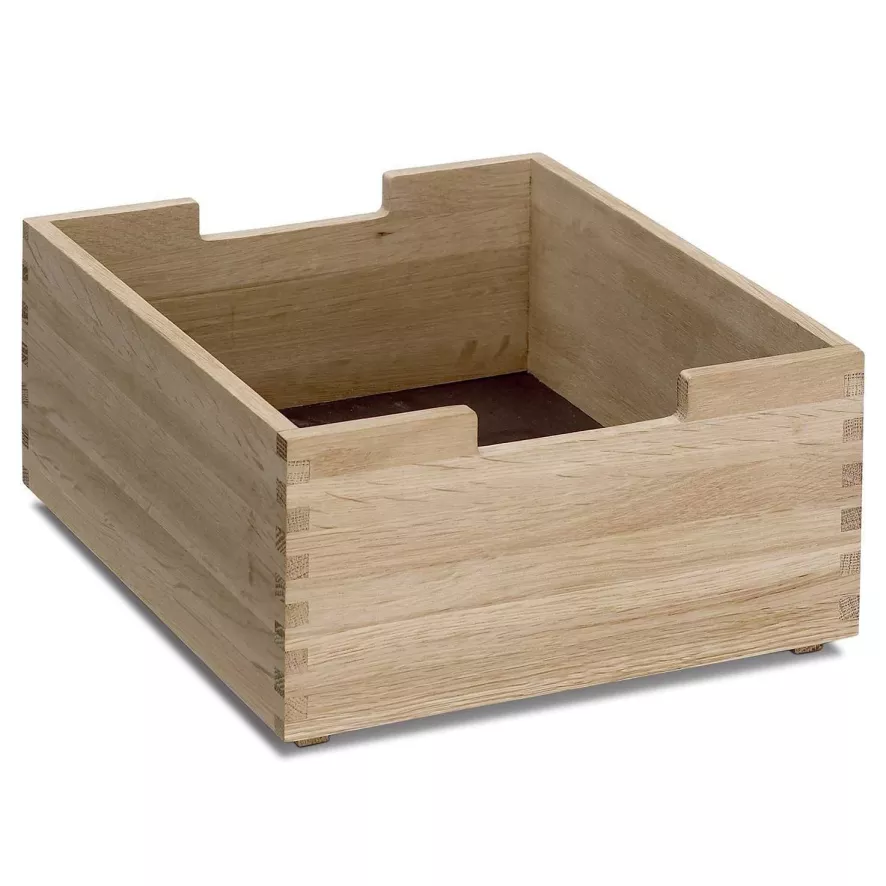 Dit is de Skagerak Cutter box low. Het is een houten box waar je veel spullen in kwijt kunt, beschikbaar in eikenhout (naturel of zwart) of teakhout. De opbergbak is 26 centimeter lang, 30 centimeter breed en 14 centimeter hoog. Omdat het hout onbehandeld is, wordt het afgeraden om de box met zeep te wassen. De Cutter box is ook beschikbaar in een grotere maat (hoog).
