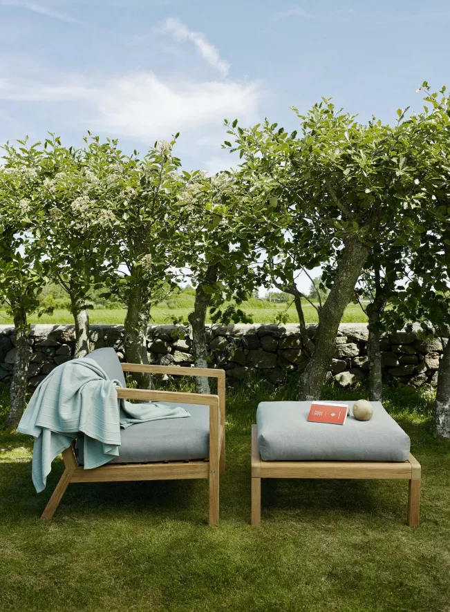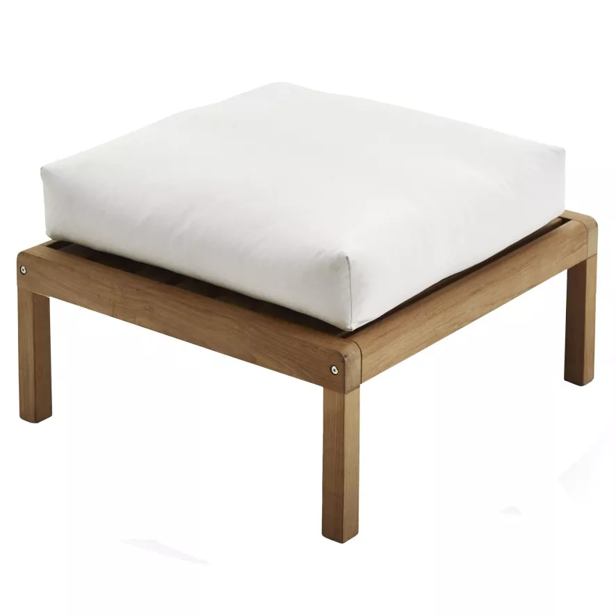 De Virkelyst poef is 75 centimeter breed, 70 centimeter diep en 42 centimeter hoog, met een rusthoogte van 43 centimeter. De bank heeft een 100% duurzaam en milieuvriendelijk teakhouten frame. De bekleding is gemaakt van speciaal door Skagerak ontwikkeld textiel, genaamd Barriere. Dit is een soort synthetische versie van katoen. Het is kleur- en lichtvast, water- en vuilafstotend en vrij van schadelijke substanties. Je kan de hoes wassen in de wasmachine op 30 graden Celsius. De vulling is gemaakt van hypoallergene Fossflakes. Teak is een weerbaar materiaal. Je kan dit schoonmaken met een houtgeschikt schoonmaakmiddel en een zachte borstel. Daarna spoel je het oppervlak af met schoon water en laat je het drogen. Na gebruik kun je de bank ook met een droge doek afnemen. Omdat het frame gemaakt is van onbehandeld hout, is het mogelijk dat er na verloop van tijd een zilvergrijze gloed ontstaat. Als je de honinggouden kleur wilt behouden of versterken, gebruik dan regelmatig teakolie voor het onderhoud. Teak is van nature bestand tegen verschillende weersomstandigheden, maar in de winter kan het raadzaam zijn de poef binnen te bewaren in een ruimte zonder verwarming (bijvoorbeeld de schuur of garage).