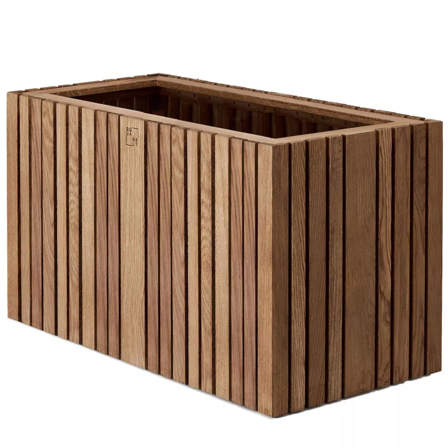 De GrowLARGE plantenbak incl waterreservoir 90×45 van Squarely heeft een lengte van 90 centimeter, een breedte van 45 centimeter en een hoogte van 52 centimeter. De plantenbak is gemaakt van geolied FSC-gecertificeerd eiken- of essenhout. Binnenin zit een waterbak en grondbak, beide gemaakt van hoogwaardig, gerecycled plastic uit de EU. De GrowLARGE plantenbak is voorzien van een waterreservoir met een inhoud van 20 liter. De plant neem hiervan zoveel water als hij nodig heeft, het enige wat jij moet doen is het waterreservoir zo nu en dan bijvullen. GrowLarge is geschikt voor een plantenpot van maximaal 80 x 40 x 30 centimeter (lxbxh). De plantenbak weegt 30 kilogram en is verkrijgbaar in verschillende uitvoeringen.