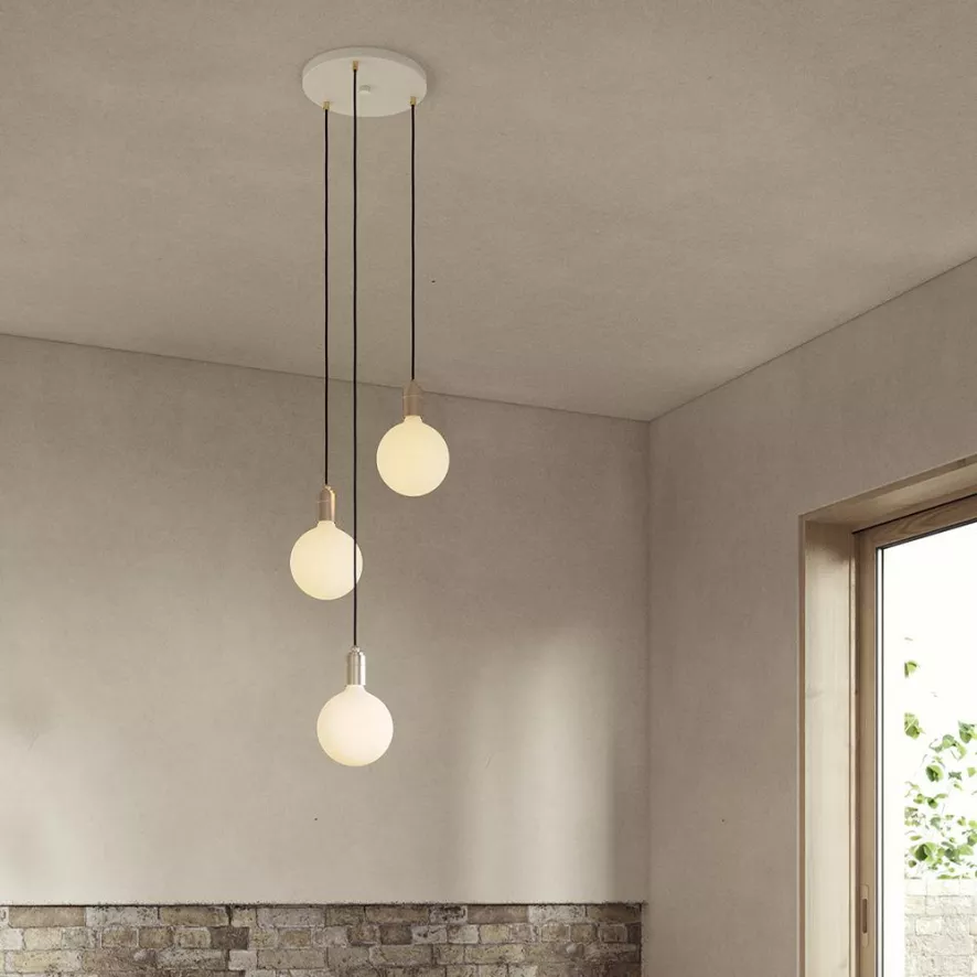 De Triple hanglamp wit heeft een diameter van 25 centimeter. De lamp heeft drie E27 fittinggen, geschikt voor lichtbronnen met een maximaal wattage van 8. Het materiaal van de lamp is staal. De kabels hebben een maximale lengte van 300 centimeter. De lichtbronnen worden niet meegeleverd.