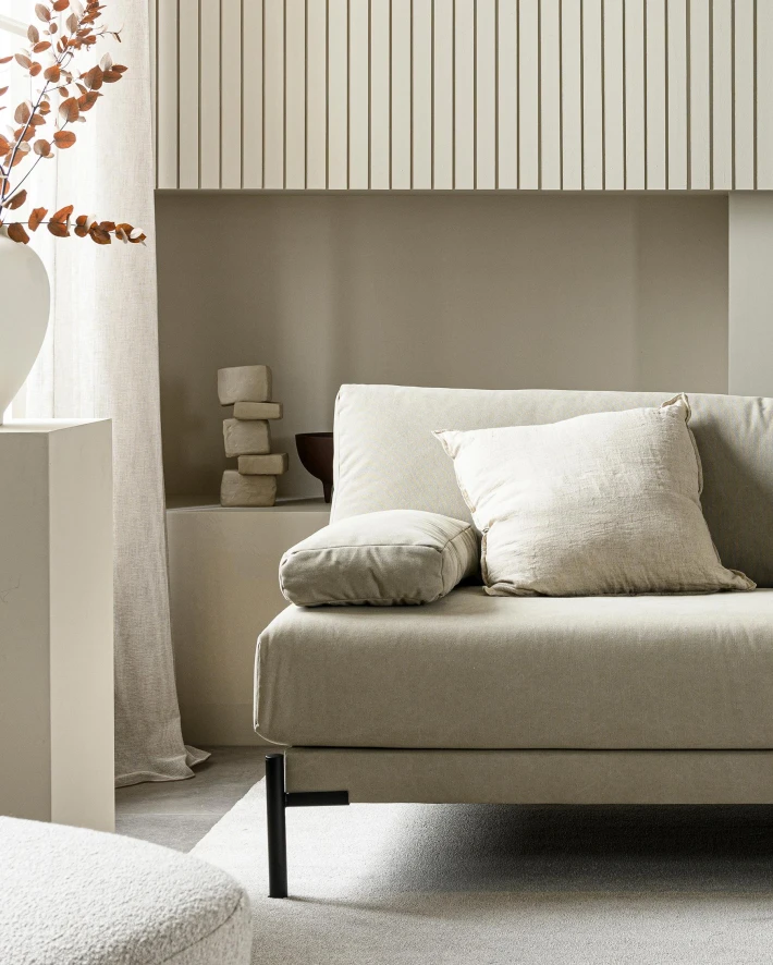 De Sleeve loveseat canvas van vtwonen is 121 centimeter breed, 94 centimeter diep en 83 centimeter hoog. De fauteuil heeft een zitbreedte van 121 centimeter, een zitdiepte van 60 centimeter en een zithoogte van 47 centimeter. De armleuning is 50 centimeter breed, 28 centimeter diep en 12 centimeter hoog. De stoel heeft een bekleding van canvas stof bestaande uit 75% katoen en 25% PES. De loveseat scoort 25.000 op de schaal van Martindale en is dus geschikt voor normaal woongebruik. Bij vlekken adviseren wij een schone, droge witte doek te gebruiken met eventueel neutrale zeep en zachtjes op de vlek te deppen. Om beschadigingen aan de vloer te voorkomen raden wij aan viltglijders onder de poten te plaatsen. De Sleeve loveseats zijn in verschillende kleuren en uitvoeringen verkrijgbaar, neem contact met ons op om de mogelijkheden te ontdekken.