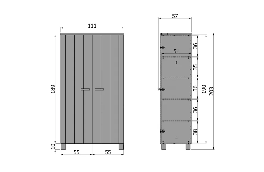 | Afmetingen | (b) 111 x (d) 55 x (h) 202 cm |