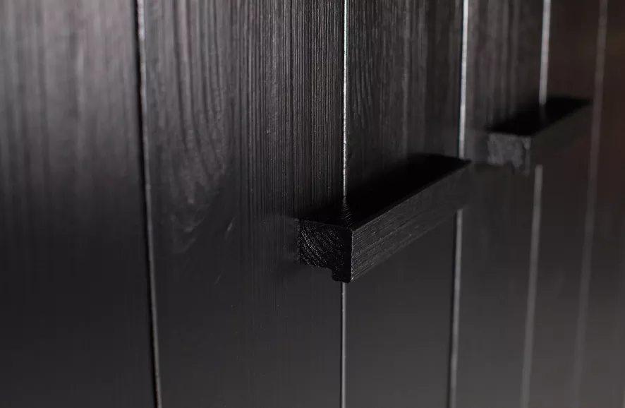De Dennis kledingkast 2-deurs van Woood is 202 centimeter hoog, 111 centimeter breed en 55 centimeter diep. Het interieur van de kast bestaat uit hanggedeelte, één brede legplank en 4 legplanken. De deuren met houten deurknop zijn voorzien van solide metalen scharnieren. De kast is gemaakt van FSC-gecertificeerd grenenhout en heeft een geborstelde afwerking. De kast is verkrijgbaar in verschillende kleurtinten.