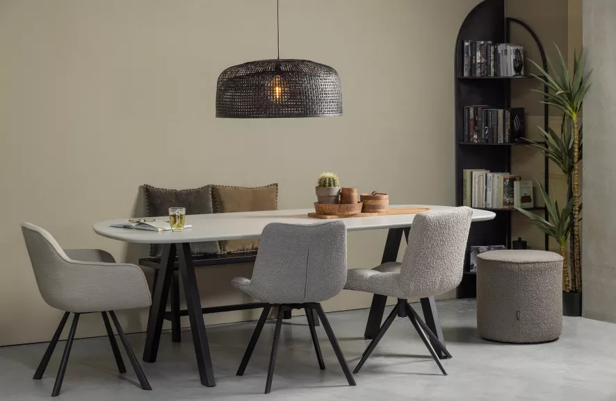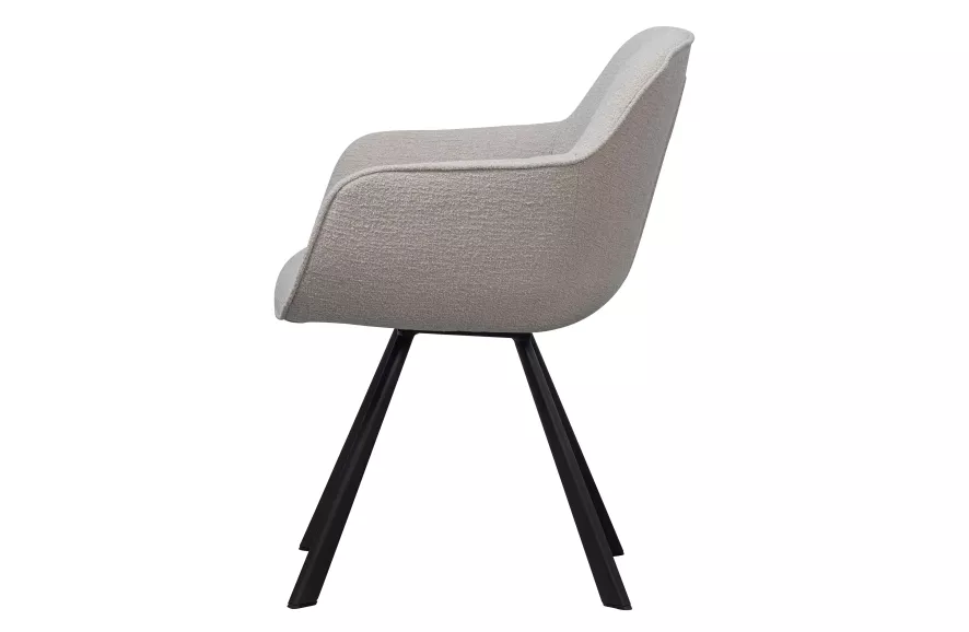 De Juno eetkamerstoel van WOOOD heeft een breedte van 58 centimeter, een diepte van 58 centimeter en een hoogte van 79 centimeter. De zitbreedte bedraagt 44 centimeter, de zitdiepte bedraagt 42 centimeter en de zithoogte bedraagt 49 centimeter. De rugleuning is – vanaf de zitting – 35 centimeter hoog en de armleuningen zijn vanaf de grond gemeten 64 centimeter hoog. De stoel heeft een maximale draagkracht van 120 kilogram. De eetkamerstoel heeft een vierpotig, metalen onderstel dat met een zwarte poedercoat is afgewerkt en een zitkuip van kunststof. De zitkuip is opgevuld met schuim en bekleed met slijtvaste bouclé stof. Wij adviseren eventuele vlekken direct droog te dekken met een schone doek of tissue. De meeste vloeistoffen zijn te verwijderen met lauw water. De Juno eetkamerstoel is verkrijgbaar in verschillende kleuren.